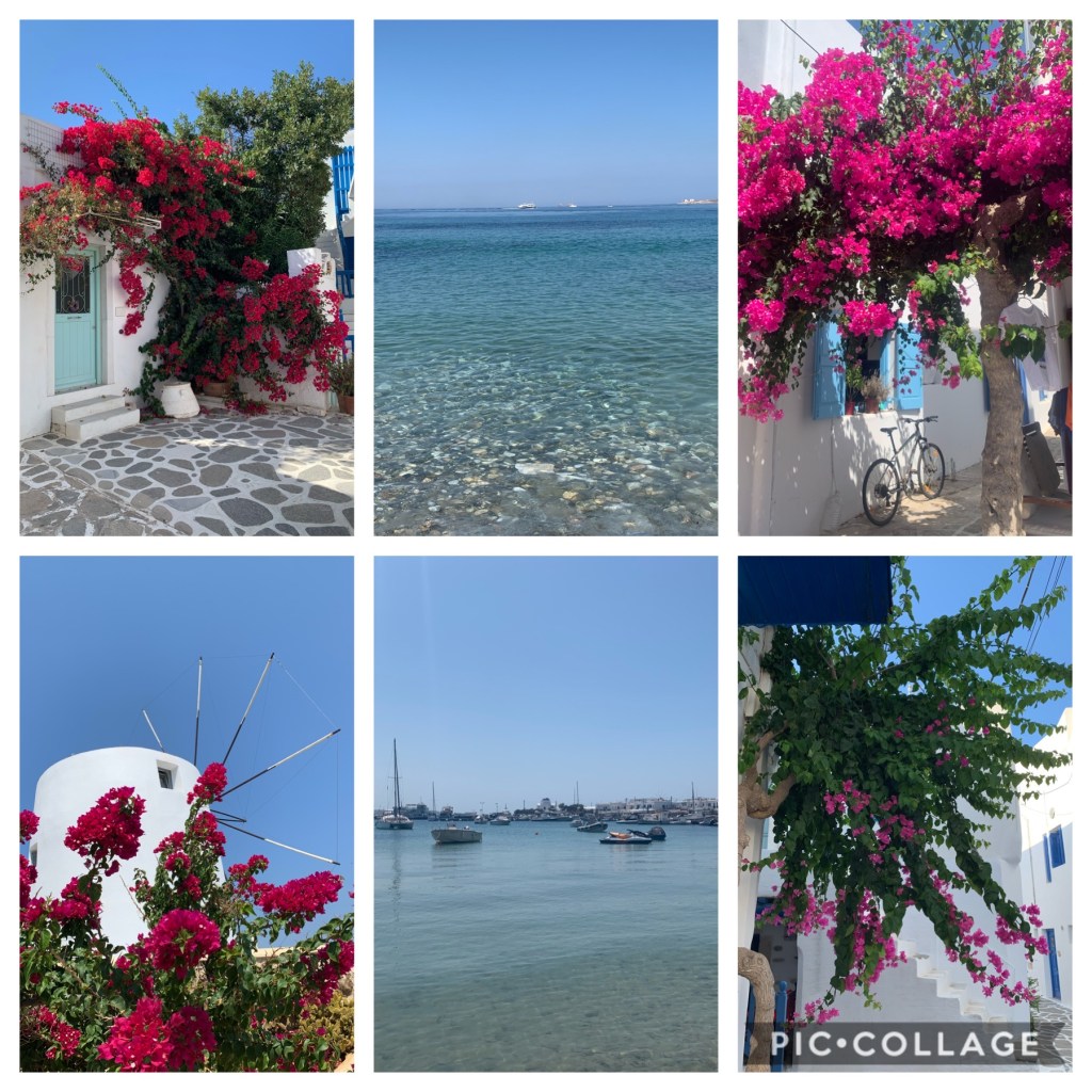 Our third island stop was Paros, billed as ‘Mykonos without the celebrity prices’. It did not disappoint. I think this was the prettiest island we visited. The old town was a maze of cobbled streets with traditional blue doors and pink blossoms at every turn. A very photogenic place. Here we stayed at ‘Casa Di Roma’ which was a short walk from the port, tucked up a side street just offset from the beach and many seafront restaurants. This was the cheapest of the accommodation that I booked, and the most rustic! I felt like Meryl Streep’s Donna as I flung open the blue shutters of our white washed room! We timed our visit to Paros well. We were there on August 15th, which was the feast of the Virgin Mary, a festival which is celebrated with particular significance on Paros. In the evening the fishing boats sailed past the waterfront restaurants adorned with lights and flares. This was followed by a spectacular firework display.