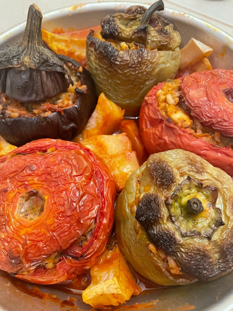 A perfect vegetarian option is Gemista or stuffed vegetables. Tomatoes, peppers and aubergines stuffed with a rice mixture. I sampled these on a sailing trip on a traditional Greek fishing boat. The Captain’s wife had made them. We became good friends on that trip and she made me some more during my visit!