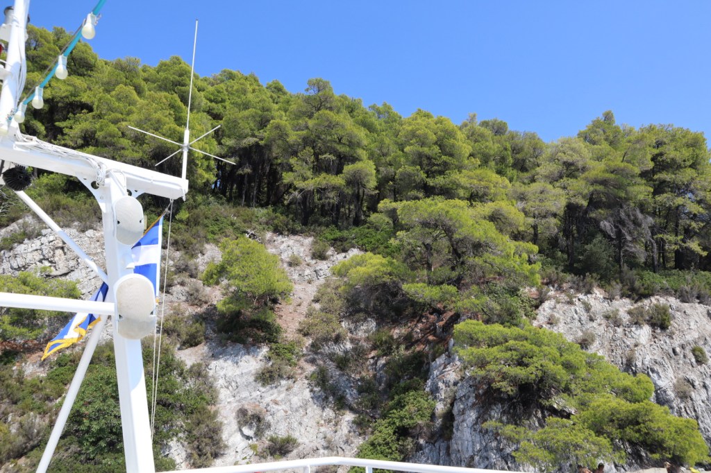 The beaches of Skopelos were the location of some of the musical numbers. Skopelos can be easily reached by boat, with many trips going each day form the Old and New Ports of Skiathos. It takes about 50 minutes to reach Skopelos and there are a variety of trips to choose from. I decided to travel with Kalypso boat on their ‘Mamma Mia Trip’ after reading many positive reviews. The boat visited Kastani beach, the site of ‘Lay All Your Love On Me’ and ‘Does Your Mamma Know?’. It also stopped at Panormos and Milia, which although beautiful, I don’t think actually featured in the film?! For a further charge you could be taken by minibus from one of the beaches to visit the iconic Mamma Mia Chapel and climb the 199 steps! I declined to do this and I assumed that I would glimpse the chapel from the boat at some point but sadly I didn’t see it! Can’t believe I went all the way to Greece and missed the chapel! Some of the other boat trips do moor at the beach below the chapel, weather permitting. It is notoriously choppy in windy conditions! If I did it again, I would probably visit with Poseidon, as you (usually) view the chapel from the boat and also visit Skopelos town, which I would prefer rather than hanging around on the beaches with hundreds of other people from the many tour boats! The boat trip was a pleasant day out. The Mamma Mia soundtrack played on loop, but it was a bit naff for a mega fan like myself! I suppose that’s what you get with mass tourism. However the scenery was as breathtaking in reality as on the movie.
